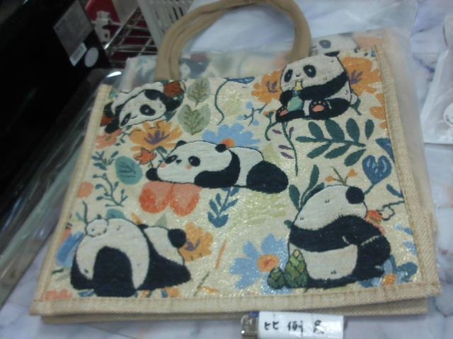 麻布熊貓帆布手提袋-新
