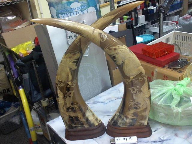 白水牛角 龍鳳呈祥1對
