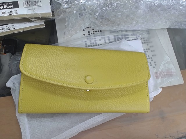 黃色牛皮扣飾多格長夾