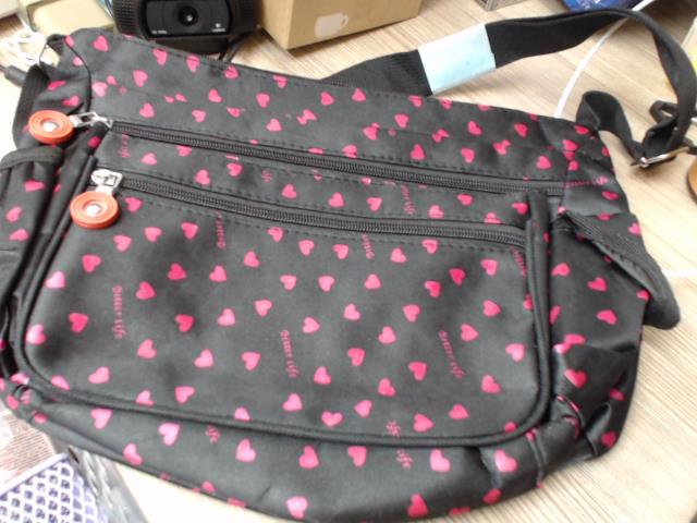 黑底粉愛心造型側背包-新