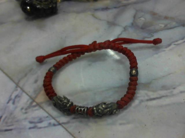 雙貔貅招財純銀紅線編織手鍊